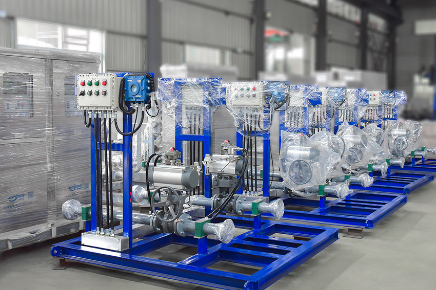 裝車橇將控制儀、流量計、閥門、管道、附屬設備、 鶴管、中間連接件及電纜、橋架等集成在一起,現場安裝方便,并且整體維護方便。